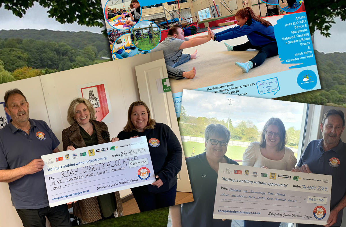 The 2022-23 season of the Shropshire Junior Football League was once again marked by the incredible generosity and support shown for various local charities through the Charity Cup Finals. We are proud to have hosted several events in partnership with Market Drayton Town FC, Ludlow Stadium and Shrewsbury Sports Village, raising substantial funds for some truly deserving causes. Here’s a look back at the charity cheque presentations from this season.